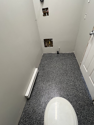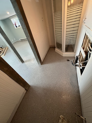 Excellent, organisé, propre et à l’écoute surtout. Toute une équipe avec joie de vivre.Grande quantité de choix de couleur et de fini, lisse, floconné, anti -dérapant.C’est à l’épreuve de l’eau et à donne même une sensation d’isolant. Terminé les vieilles odeurs.Il ont peinturé le couvert du canal dégoût sans même lui demandé. Très...